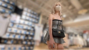 上はチューブトップで下は超ミニ丈のスカートでお尻は丸見え。