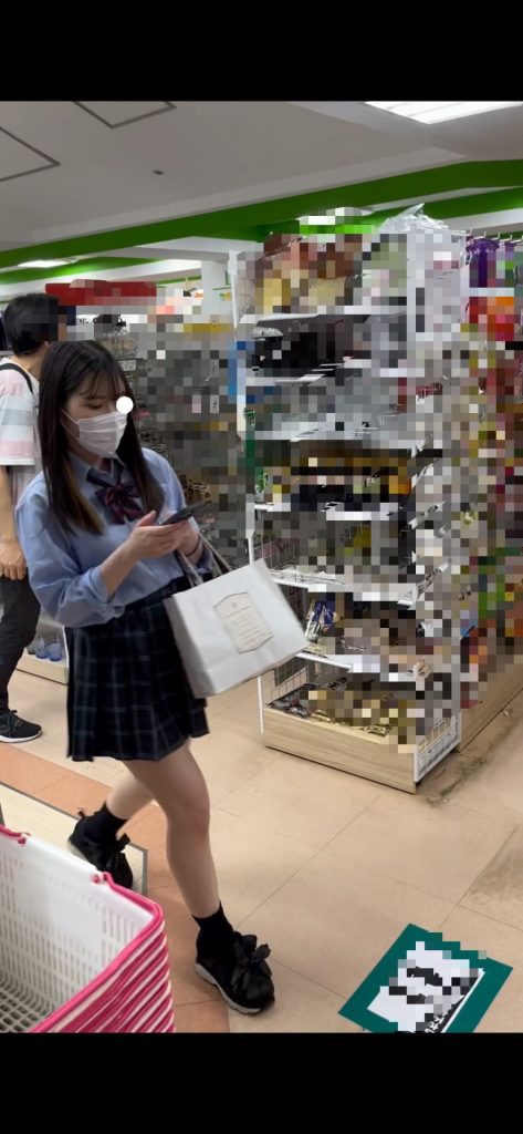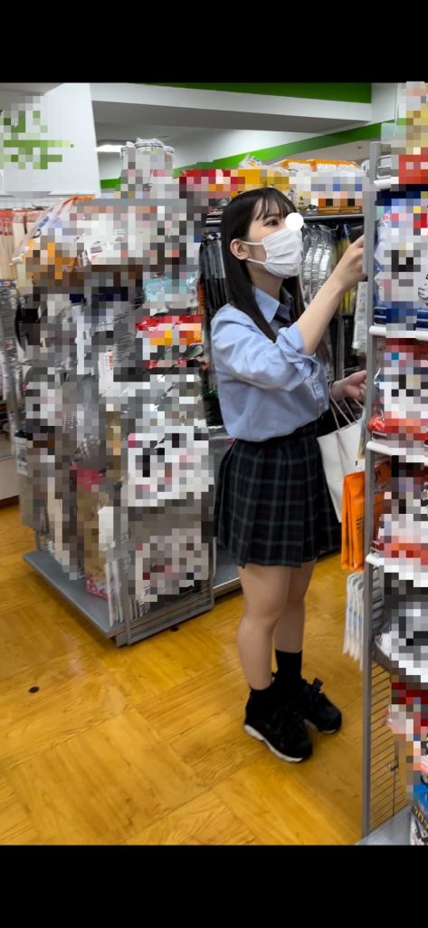 普通に立って商品棚を見てるとこ、屈んだ瞬間に差し込んでます。